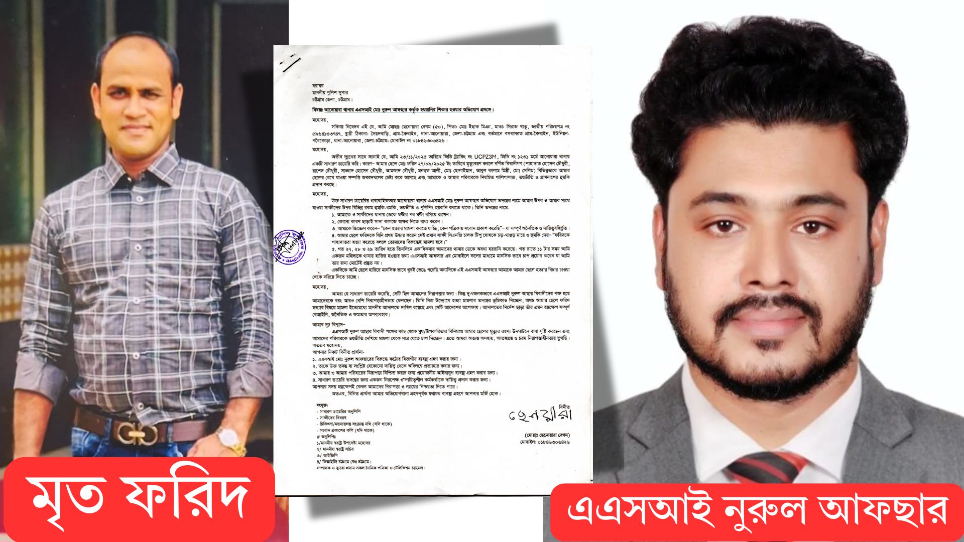 “এএসআই আফছার বিবাদীদের পক্ষে কাজ করছেন।” তিনি পুলিশের সর্বোচ্চ কর্তৃপক্ষের দৃষ্টি আকর্ষণ করে বলেন—