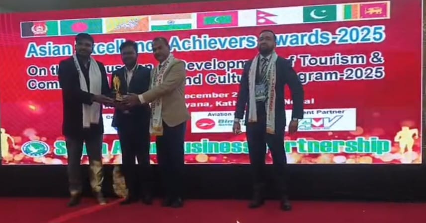 কাঠমান্ডু, নেপাল | দক্ষিণ এশিয়ার দেশগুলোর মধ্যে পারস্পরিক বন্ধুত্ব সুদৃঢ় করা, পর্যটন উন্নয়ন, বাণিজ্য সম্প্রসারণ এবং সাংস্কৃতিক বিনিময় জোরদার করার লক্ষ্যে নেপালের রাজধানী কাঠমান্ডুতে সফলভাবে অনুষ্ঠিত হলো এশিয়ান এক্সিলেন্স অ্যাচিভার্স অ্যাওয়ার্ডস–২০২৫। আন্তর্জাতিক মর্যাদাসম্পন্ন এই আয়োজনটি অনুষ্ঠিত হয় শুক্রবার, ১৩ ডিসেম্বর ২০২৫, খ্যাতনামা হোটেল জি রামায়ণায়। অনুষ্ঠানে দক্ষিণ এশিয়ার বিভিন্ন দেশ থেকে নীতিনির্ধারক, জনপ্রতিনিধি, কূটনীতিক, ব্যবসায়ী ও সাংস্কৃতিক ব্যক্তিত্বরা অংশ নেন। অনুষ্ঠানে প্রধান অতিথি হিসেবে উপস্থিত ছিলেন নেপাল সরকারের যুব ও ক্রীড়া বিষয়ক মাননীয় মন্ত্রী মি. বাবলু গুপ্তা। তাঁর বক্তব্যে তিনি বলেন, পর্যটন ও বাণিজ্য দক্ষিণ এশিয়ার অর্থনৈতিক প্রবৃদ্ধির প্রধান চালিকাশক্তি। টেকসই উন্নয়নের জন্য আঞ্চলিক পর্যায়ে সম্মিলিত সহযোগিতা অপরিহার্য। তিনি নেপাল, বাংলাদেশ ও ভুটানের মধ্যে যুবসমাজের সম্পৃক্ততা, ক্রীড়া ও সাংস্কৃতিক বিনিময়ের গুরুত্বও তুলে ধরেন। বিশেষ অতিথি হিসেবে বক্তব্য দেন নেপাল সরকারের জ্বালানি, নগর উন্নয়ন, পরিবহন ও পানি সম্পদ বিষয়ক মাননীয় মন্ত্রী মি. কুলমান ঘিসিং। তিনি বলেন, টেকসই জ্বালানি ব্যবস্থাপনা, স্মার্ট নগর উন্নয়ন এবং শক্তিশালী আঞ্চলিক সংযোগ দক্ষিণ এশিয়ার দীর্ঘমেয়াদি অগ্রগতির জন্য অপরিহার্য। এশিয়ান এক্সিলেন্স অ্যাচিভার্স অ্যাওয়ার্ডসের মতো প্ল্যাটফর্মগুলো আঞ্চলিক অংশীদারিত্ব গড়ে তুলতে গুরুত্বপূর্ণ ভূমিকা রাখছে বলেও তিনি উল্লেখ করেন। অনুষ্ঠানে আরও বক্তব্য দেন নেপালের সাবেক মন্ত্রী ও দীর্ঘদিনের প্রতিনিধি পরিষদ সদস্য মি. একনাথ ঢাকাল, সাবেক সংস্কৃতি, পর্যটন ও বেসামরিক বিমান পরিবহনমন্ত্রী মি. আনন্দ প্রসাদ পোখরেল, প্রতিনিধি পরিষদের সদস্য মিস তারা লামা তামাং, ভুটানের CRC (UN)–এর ভাইস প্রেসিডেন্ট ড. রিনচেন চোপেল, ধুলিখেল পৌরসভার মেয়র মি. অশোক ব্যাঞ্জু এবং নেপালের স্বনামধন্য উদ্যোক্তা ও জেড গার্মেন্টস প্রাইভেট লিমিটেড–এর সিইও মিস জাশমিন বানু। বক্তারা সম্মিলিতভাবে বলেন, পর্যটন ও সাংস্কৃতিক ঐতিহ্য দক্ষিণ এশিয়ার অর্থনৈতিক উন্নয়নের শক্তিশালী মাধ্যম। অসামান্য সমাজসেবায় সম্মানিত মি. মাহফুজুর রহমান বাংলাদেশের প্রতিনিধিত্ব করে অনুষ্ঠানে গুরুত্বপূর্ণ ভূমিকা রাখেন চট্টগ্রাম মেট্রোপলিটন পুলিশের কোতোয়ালি জোনের সহকারী পুলিশ কমিশনার মো. মাহফুজুর রহমান। তাঁর বক্তব্যে তিনি সীমান্তপাড়ি সহযোগিতা, সামাজিক স্থিতিশীলতা এবং নিরাপদ ও বিনিয়োগবান্ধব পরিবেশ গড়ে তুলতে আইনশৃঙ্খলা বাহিনীর ভূমিকার ওপর গুরুত্বারোপ করেন।সমাজসেবা, জননিরাপত্তা ও কমিউনিটি এনগেজমেন্টে অসামান