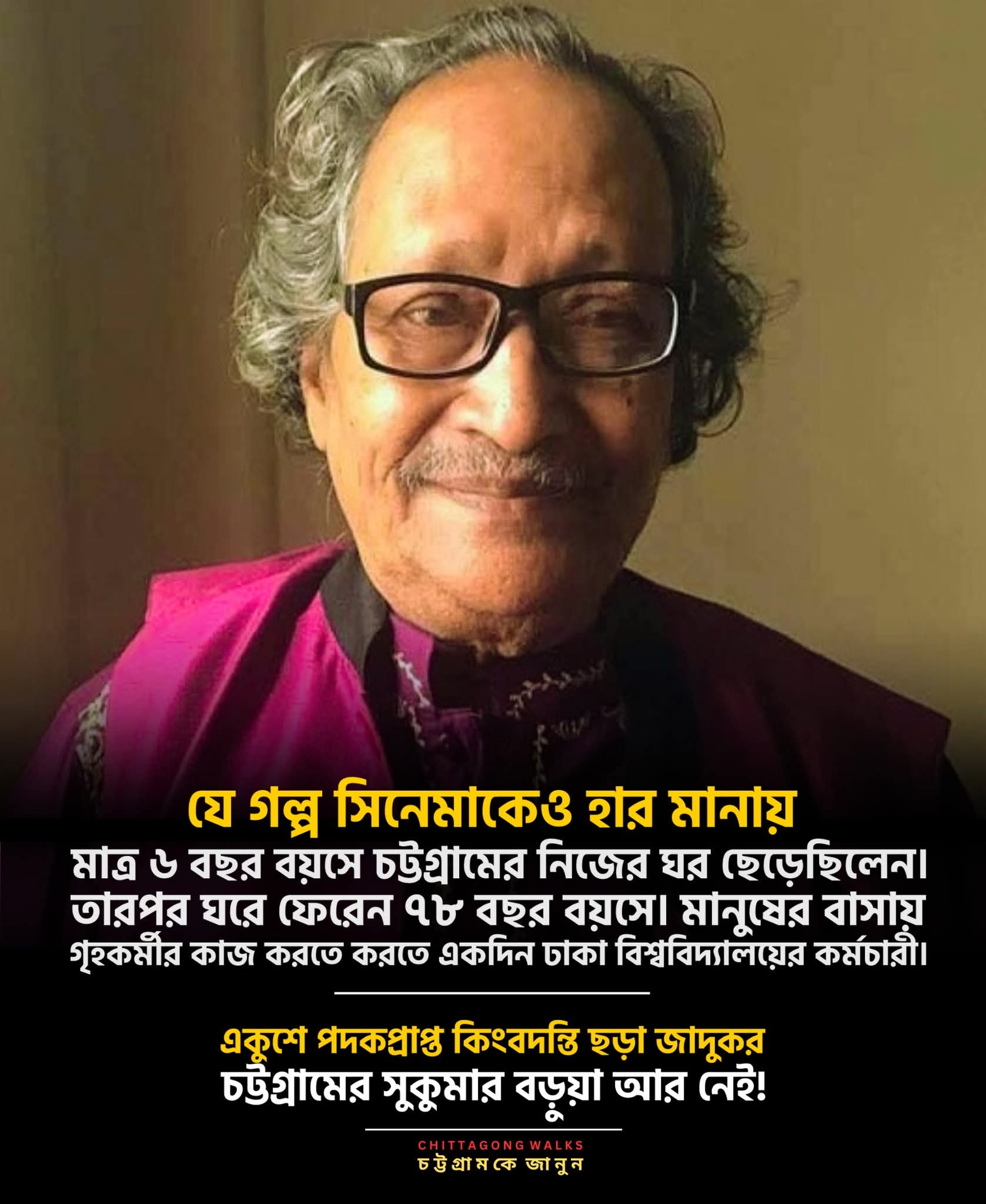 আরেকটি পথ জীবনের—সেখানে অভিজ্ঞতা, উপলব্ধি, মনন আর মানবিকতার দীর্ঘ যাত্রা। সুকুমার বড়ুয়া ছিলেন দ্বিতীয় পথের মানুষ। তিনি প্রমাণ করে দিয়ে গেছেন—শ্রেণীকক্ষের শিক্ষা আসল শিক্ষা নয়, বিদ্যালয় মানুষকে সনদ দিতে পারে, কিন্তু জ্ঞান দিতে পারে না। জ্ঞান অর্জিত হয় জীবন থেকে, মানুষের সঙ্গে মিশে, সময়ের সঙ্গে লড়াই করে। আজ যখন আমরা তাঁকে হারিয়েছি, তখন শুধু একজন ছড়াকার নয়—আমরা হারিয়েছি এক বিকল্প শিক্ষাদর্শন, এক জীবন্ত প্রতিবাদ, এক নিঃশব্দ বিপ্লবকে। আমাদের সমাজে একটি গভীর ভুল ধারণা বহুদিন ধরে বদ্ধমূল—যাঁদের ডিগ্রি আছে, তাঁরাই শিক্ষিত। যাঁদের সনদ নেই, তাঁরা যেন অশিক্ষিত। এই ধারণার বিরুদ্ধে সবচেয়ে শক্ত, সবচেয়ে নির্ভরযোগ্য উদাহরণ ছিলেন সুকুমার বড়ুয়া।