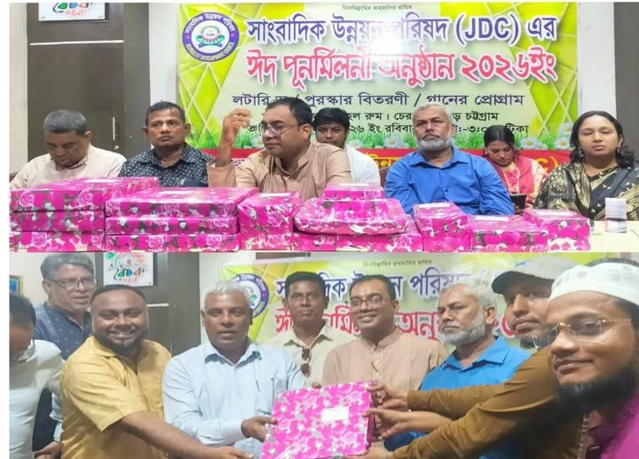নিজস্ব প্রতিবেদক সাংবাদিক, সামাজিক/ মানবিক ও স্বেচ্ছাসেবী সংগঠন সাংবাদিক উন্নয়ন পরিষদ ( JDC ) র উদ্যোগে ঈদ পুনর্মিলনী, সাংস্কৃতিক অনুষ্ঠান, কুইজ প্রতিযোগীতা এবং সাংবাদিকদের মাঝে লটারী ড্র র মাধ্যমে পুরস্কার বিতরণী অনুষ্ঠান সম্পন্ন করা হয়েছে। গত ০৫ ই এপ্রিল, রবিবার, সন্ধ্যা ৭ঃ০০ঘটিকার সময় নগরীর চেরাগী পাহাড়স্ত আজাদী গলী বৈঠক খানা হলরুমে একটি গানের আসরের মাধ্যমে এই আয়োজন অনুষ্ঠিত হয়। সংগঠনের পরিচালনা বোর্ডের প্রধান পরিচালক মো: কামাল উদ্দীনের পরিচালনায়, কেন্দ্রীয় কমিটির সভাপতি শহিদুল ইসলামের সভাপতিত্বে, রেবেকা সুলতানা রেখা চৌধুরীর সঞ্চালনায় উক্ত অনুষ্ঠানে প্রধান অতিথি হিসেবে উপস্থিত ছিলেন সাংবাদিক উন্নয়ন পরিষদের চেয়ারম্যান এস, এম,মিজান উল্লাহ।