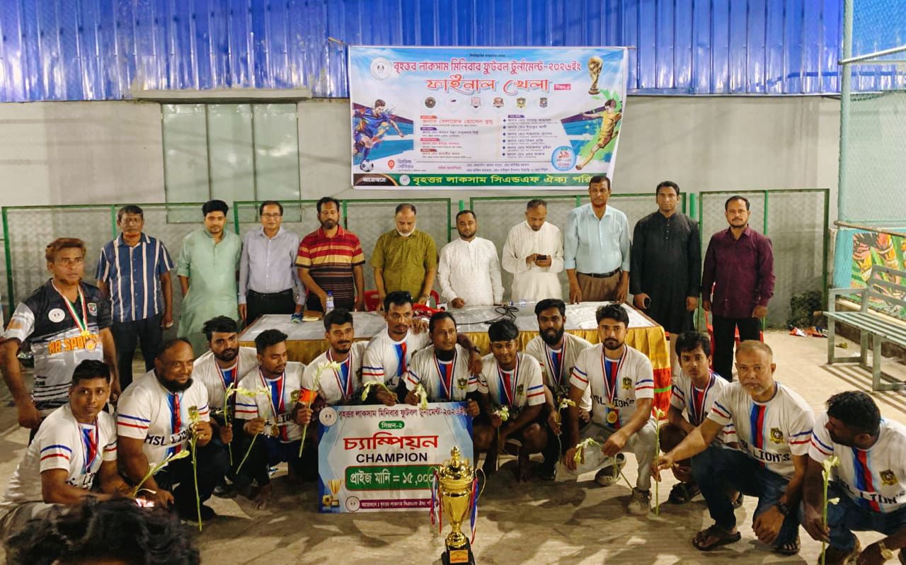 চট্টগ্রাম নগরীর হালিশহর গ্রিনফিল্ড মাঠে অত্যন্ত উৎসবমুখর পরিবেশে অনুষ্ঠিত হলো বৃহত্তর লাকসাম সিএন্ডএফ ঐক্য পরিষদ’ আয়োজিত মিনিবার ফুটবল টুর্নামেন্ট ২০২৬ এর জমকালো ফাইনাল। ১৯শে এপ্রিল রবিবার রাতে স্থানীয় ক্রীড়ামোদী ও বিশিষ্ট ব্যক্তিবর্গের উপস্থিতিতে টুর্নামেন্টের শিরোপা নির্ধারণী এই ম্যাচটি অনুষ্ঠিত হয়। বৃহত্তর লাকসাম সিএন্ডএফ ঐক্য পরিষদের আহ্বায়ক মোঃ ইউনুস খন্দকারের সভাপতিত্বে এবং জাহাঙ্গীর আলমের সঞ্চালনায় অনুষ্ঠানে প্রধান অতিথি হিসেবে উপস্থিত ছিলেন চট্টগ্রাম মহানগর স্বেচ্ছাসেবক দলের আহ্বায়ক বেলায়েত হোসেন বুলু। অনুষ্ঠানে বিশেষ অতিথির বক্তব্যে বিশিষ্ট মানবিক ও ব্যবসায়িক সংগঠক লায়ন মোঃ জাহাঙ্গীর আলম বলেন, মাদক মুক্ত সমাজ গড়তে খেলাধুলার বিকল্প নেই। বৃহত্তর লাকসাম সিএন্ডএফ ঐক্য পরিষদের এই আয়োজন যুবসমাজের জন্য এক অনন্য অনুপ্রেরণা। বর্তমান সময়ে আমাদের যুব সমাজের একটি বড় অংশ মাদকের নেশায় পথ হারাচ্ছে। তরুণ প্রজন্মকে এই ধ্বংসাত্মক পথ থেকে দূরে সরিয়ে সুস্থ ধারায় ফিরিয়ে আনতে খেলাধুলার কোনো বিকল্প নেই। তিনি আয়োজকদের সাধুবাদ জানিয়ে ভবিষ্যতে এ ধরনের যেকোনো সৃজনশীল ও ক্রীড়া উদ্যোগে পাশে থাকার দৃঢ় অঙ্গীকার ব্যক্ত করেন। ফাইনাল খেলায় বিশেষ অতিথি হিসেবে আরও উপস্থিত ছিলেন ফাইম কারগো লাইন্স লিমিটেডের ব্যবস্থাপনা পরিচালক মোঃ সালেহ আহমেদ। কনফিডেন্স সিএন্ডএফ লিমিটেডের ব্যবস্থাপনা পরিচালক মোঃ শাহাদাত হোসেন। বাংলাদেশ ক্রেন সিস্টেম এর ব্যবস্থাপনা পরিচালক ইঞ্জিনিয়ার এইচ এম এরশাদ।